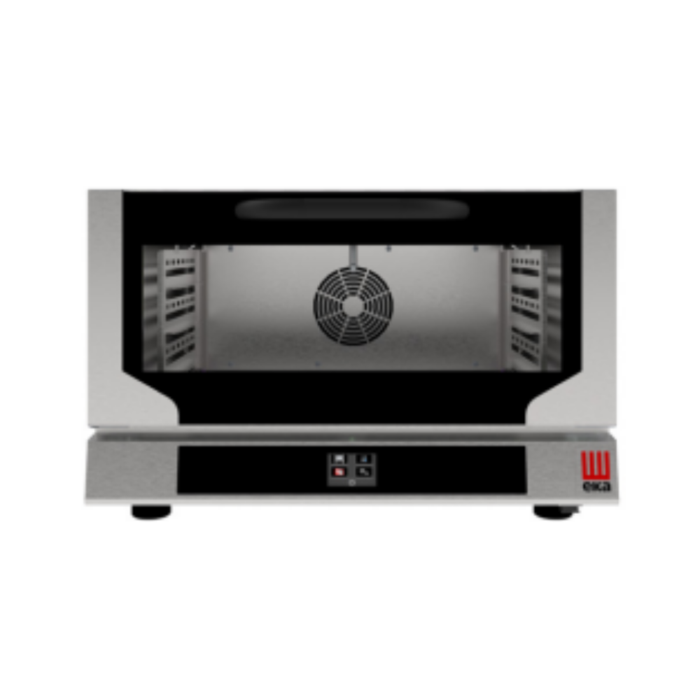 Eka EKF 364 N T UD nemlendirmeli konveksiyon fırın. 3 adet 600x400 mm tepsi kapasitesi, 100 programlı hafıza, dijital prob ve 10 seviye nem kontrolü.