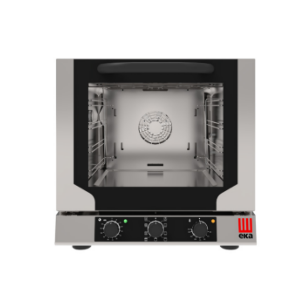 Profesyonel mutfaklar için Eka EKF 423 N M çok fonksiyonlu konveksiyon fırın. 4 tepsi kapasitesi, 7 pişirme modu ve 260°C sıcaklık aralığıyla mükemmel sonuç.