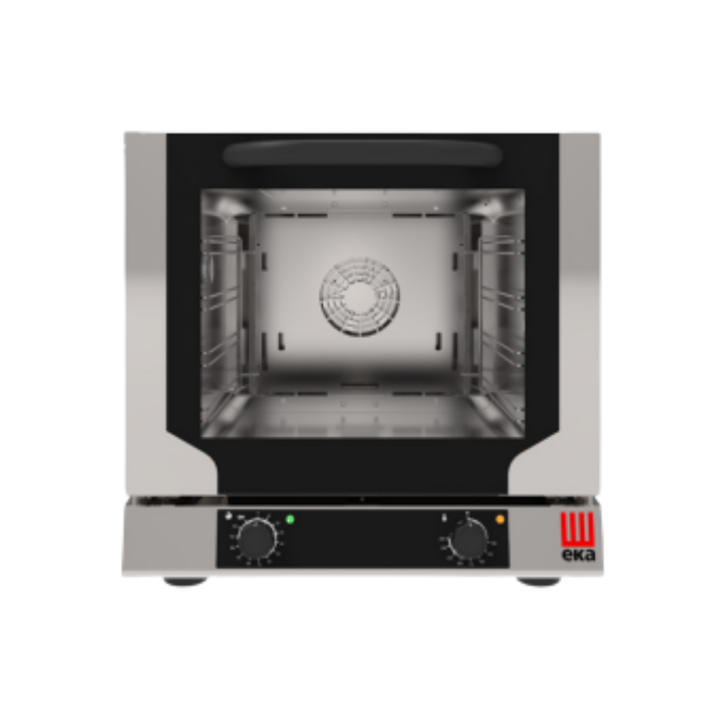 Profesyonel mutfaklar için Eka EKF 423 N PP elektrikli konveksiyon fırın. 4 tepsi kapasitesi, manuel kontrol, 260°C sıcaklık aralığı ve kompakt tasarım.
