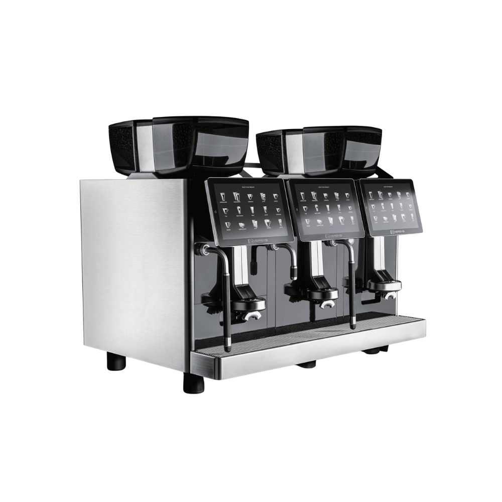 Çıkışlar: 3 adet çiftli kahve çıkışı, 1 adet buhar çubuğu, 1 adet sıcak su musluğu, 2 adet 1,5 L süt musluğu